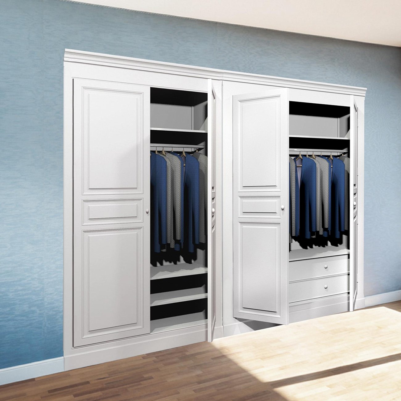 Для укомплектации шкафа можно купить дополнительные полки и рейлы отдельно.