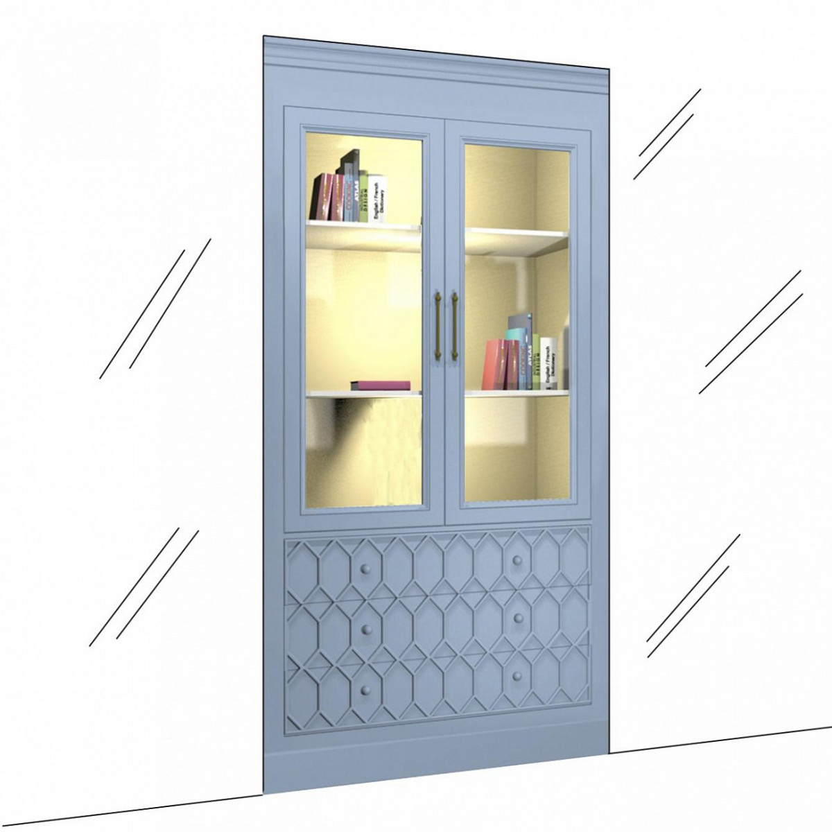 Витрина встраиваемая Портленд без уголков васильковое поле